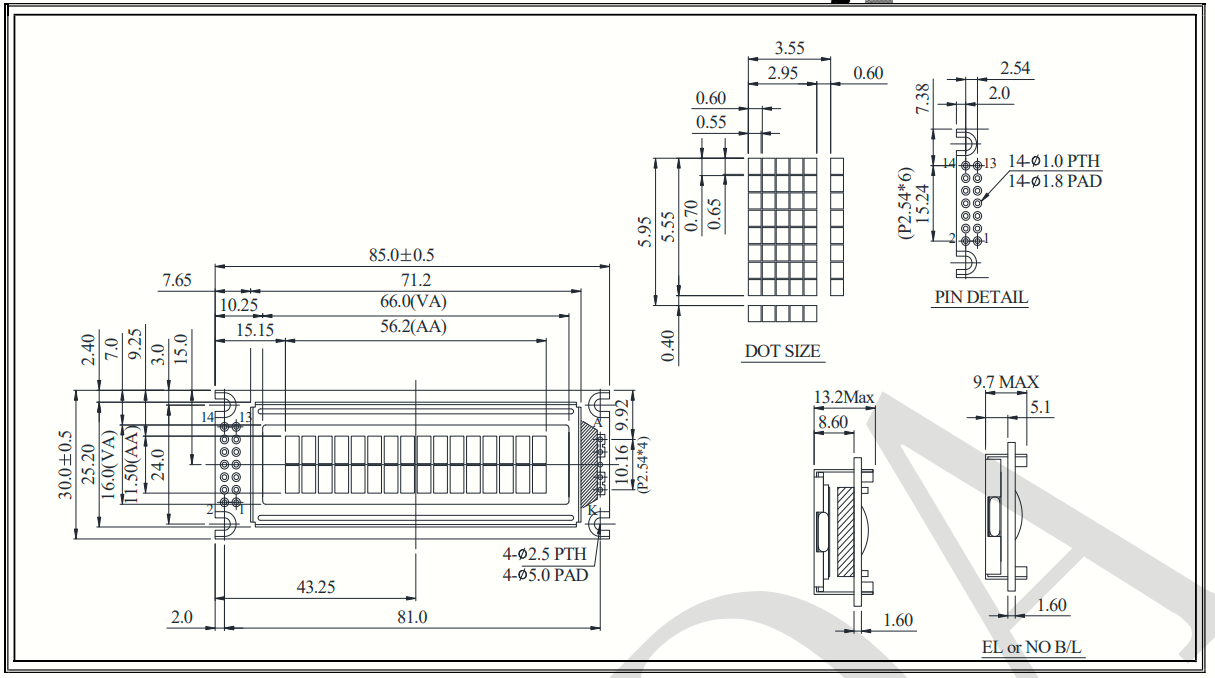 點(diǎn)大小 | 0.55 x 0.65 | mm |