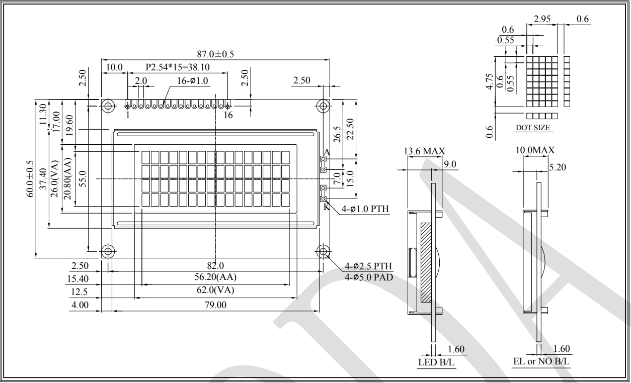 點(diǎn)間距 | 0.60 x 0.60 | mm |
