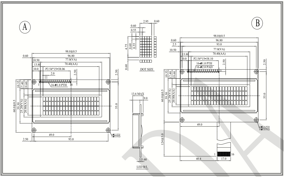 產品敘述TC2004A是一款20字x4行字符模塊,此款的LCD面板有多種選擇,例如:正顯灰色、正顯黃綠色、負顯藍色、還有正顯與負顯FSTN面板。 TC2004A內建ST7066 IC,5V電壓驅動,也可改用負壓3V驅動,預設介面為6800 4-bit/8-bit接口,背光包含多種搭配例如黃綠光、藍光、綠光、白光、琥珀光、紅光。 LED可由PIN1, PIN2, PIN15, PIN16 或是A/