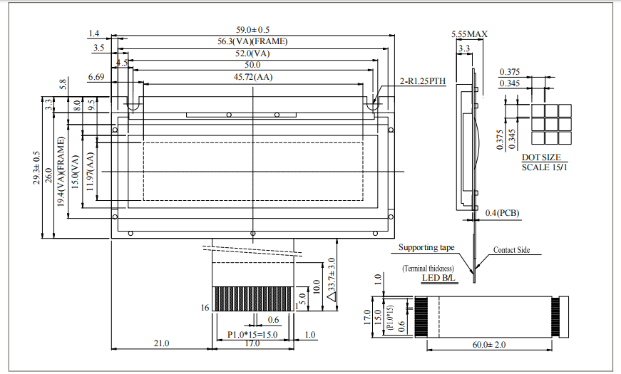 模塊尺寸 | 59.0 x 29.3 x 5.55(Max) | mm |