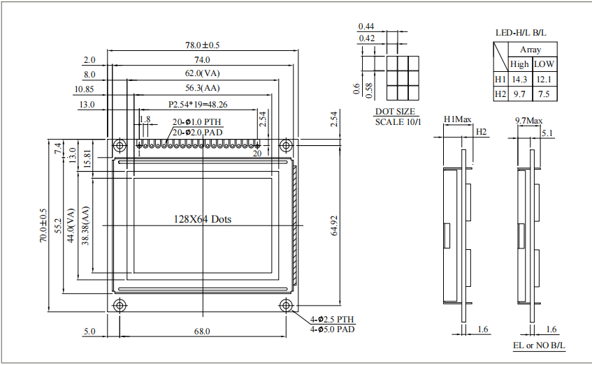 產(chǎn)品敘述TG12864C 是一款2.7吋單色LCD圖形128x64液晶顯示器點陣屏,此模塊內(nèi)置NT7107, NT7108控制器(或相容IC),6800 8-bit平行接口, 5V電壓驅(qū)動,同時提供3.3V驅(qū)動負(fù)壓版本,此款型號有多色LED背光選擇包含RGB全彩背光,玻璃有正顯與負(fù)顯及FSTN型LCD,此款模塊的操作溫度是-20℃ ~ +70℃,儲存溫度為-30℃ ~ +80, ,所有物料符合環(huán)保