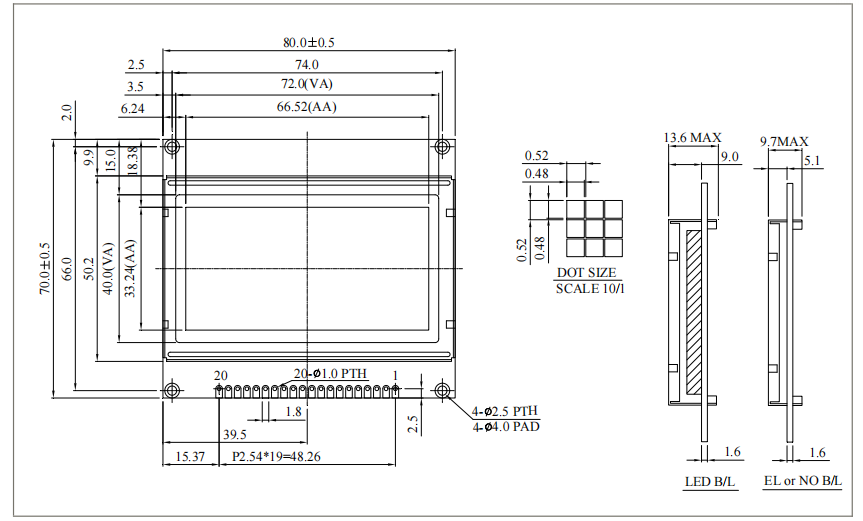 點大小 | 0.48 x 0.48 | mm |