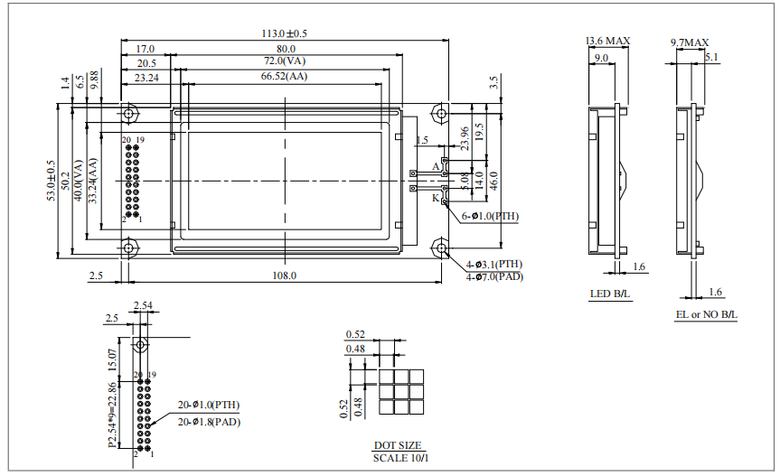 點間距 | 0.52 x 0.52 | mm |