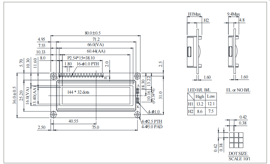 點(diǎn)間距 | 0.42 x 0.42 | mm |