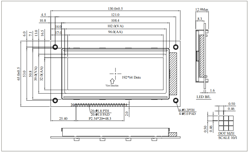 點(diǎn)大小 | 0.46 x 0.46 | mm |