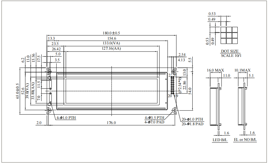 點大小 | 0.49 x 0.49 | mm |