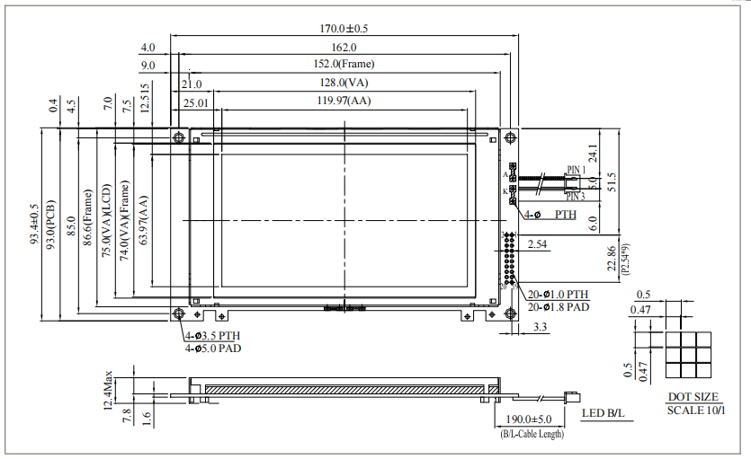 模塊尺寸 | 170.0 x 93.4 x 12.4(Max) | mm |