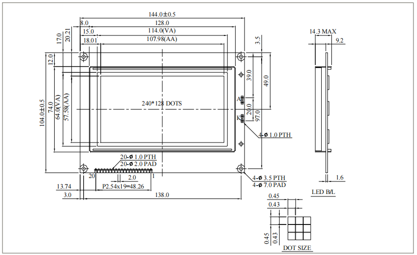 模塊尺寸 | 144.0 x 104.0 x 14.3(Max) | mm |