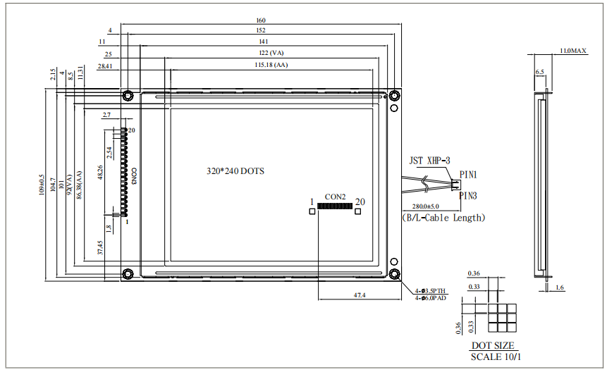 點(diǎn)陣(分辨率) | 320 x 240 | - |